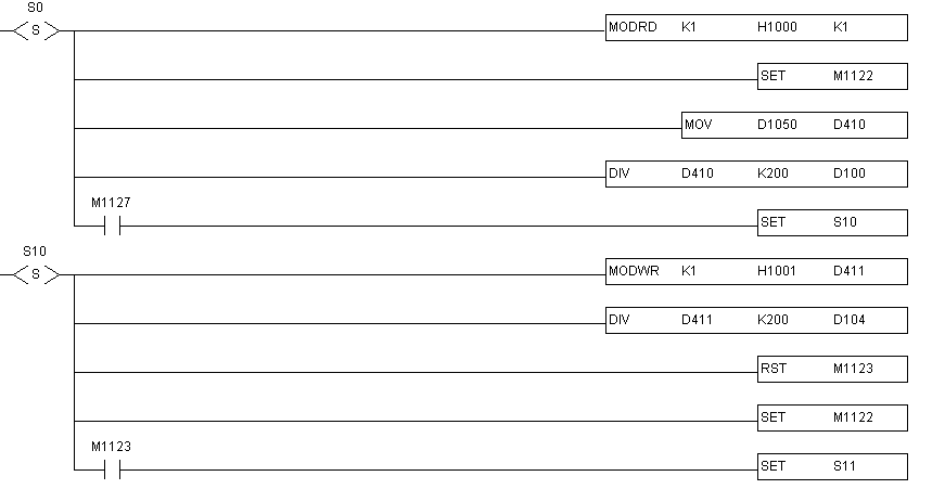 你這個(gè)程序也挺奇怪的,看到示例里一般用計(jì)數(shù)來(lái)執(zhí)行MODBUS指令.不知道用步進(jìn)指令到底可行不. 下了你的原程序和修改后的程序,原程序第一次打開的時(shí)候還可以正常編譯,等我把修改后的程序也編譯后,原程序出現(xiàn)類似提示,要先SET S10 再?gòu)?fù)位M1127 改了之后 后面的都要改.我之前用過(guò)臺(tái)達(dá)的PLC控制變頻器,記得用的M1127沒有用M1123,不知道這個(gè)區(qū)別到底在哪里?有誰(shuí)可以幫忙解釋下嗎? ![]() |