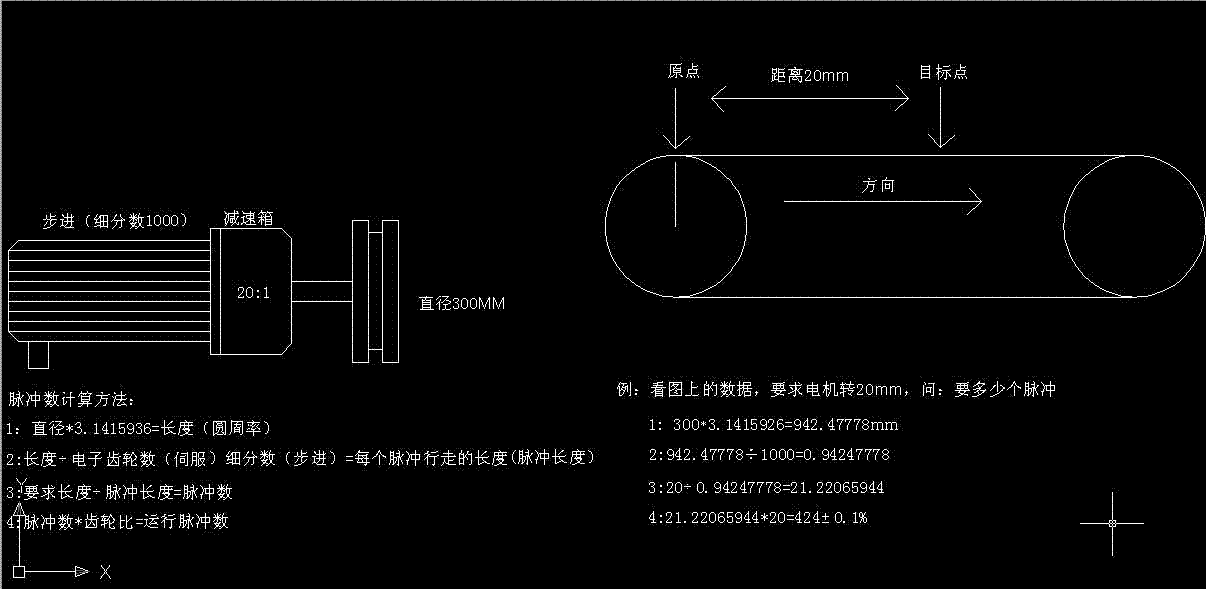 首先 有你的一米除以螺距5MM 也就是說(shuō)1米需要螺桿轉(zhuǎn)動(dòng)200圈 乘以減速比 就得到 電機(jī)需要轉(zhuǎn)動(dòng)3000轉(zhuǎn) 然后編碼器裝在電機(jī)末端 電機(jī)轉(zhuǎn)一圈 是返回1024個(gè)脈沖 3000*1024就是1米總共返回的脈沖數(shù) S=(L/D)*i*n 其中 L是所走長(zhǎng)度 D是螺距 I是減速比 N編碼器線數(shù) S為一定長(zhǎng)度所返回的脈沖數(shù)