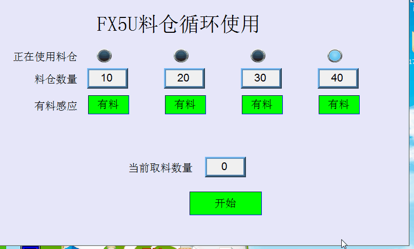 現在取料倉有4個,觸摸屏可以設定料倉數量,最大可設4,因為只有4個料倉,步進電機控制位移