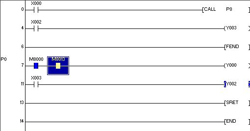 是三菱的呵呵!子程序調用的時候!我一直導通的,后來子程序不調用了!Y0的映像區就一直ON了!