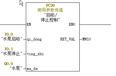 各位高手,本人是初學,對于上圖所示的“使用參數傳遞”(是不是又叫條件調用功能塊),到底如何輸入條件這個參數,也就是如何輸入“水泵啟動、水泵停止、水泵”這些條件,本人弄了半天也沒有弄明白是如何輸入?