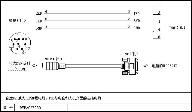 單位有臺設(shè)備是臺達(dá)DVP-24ES的PLC,我想把程序拷下來,做個備份,但是我按照圖上做的編程電纜,為什么電腦和PLC通信不上呢?我選擇好了通信口,232通信模式,ASCII碼傳輸,通信速率依據(jù)PLC設(shè)置,然后選擇了自動偵測,但是怎么老是掃描不到PLC呢?哪里出問題了呢?編程電纜的線接錯了?還是?請大家指點一下,謝謝。