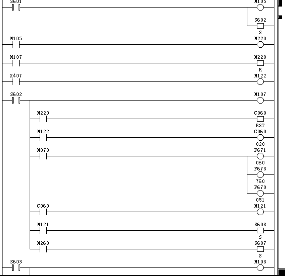 M200是控制C060計數器線圈的,在程序步進S602中,M200常開觸點不會閉合,所以C060不能計數!