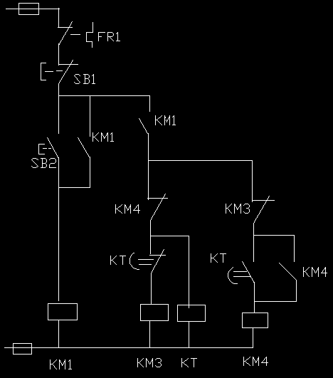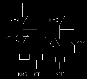 KT常開是通電后延時閉合,KM4常開則是通電立即閉合。那個KT的延時是你自己設置的,你可以換回普通的嗎?