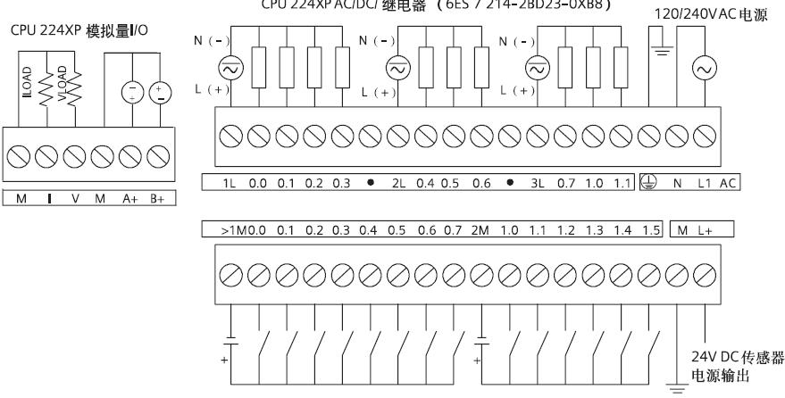 PLC224XP自帶的 模擬量的端子怎么連線啊?他們每個點的含義。