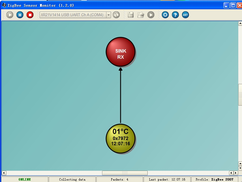 3, 如果Coordinator模塊正確連接,Coordinator節(jié)點會變成紅色;