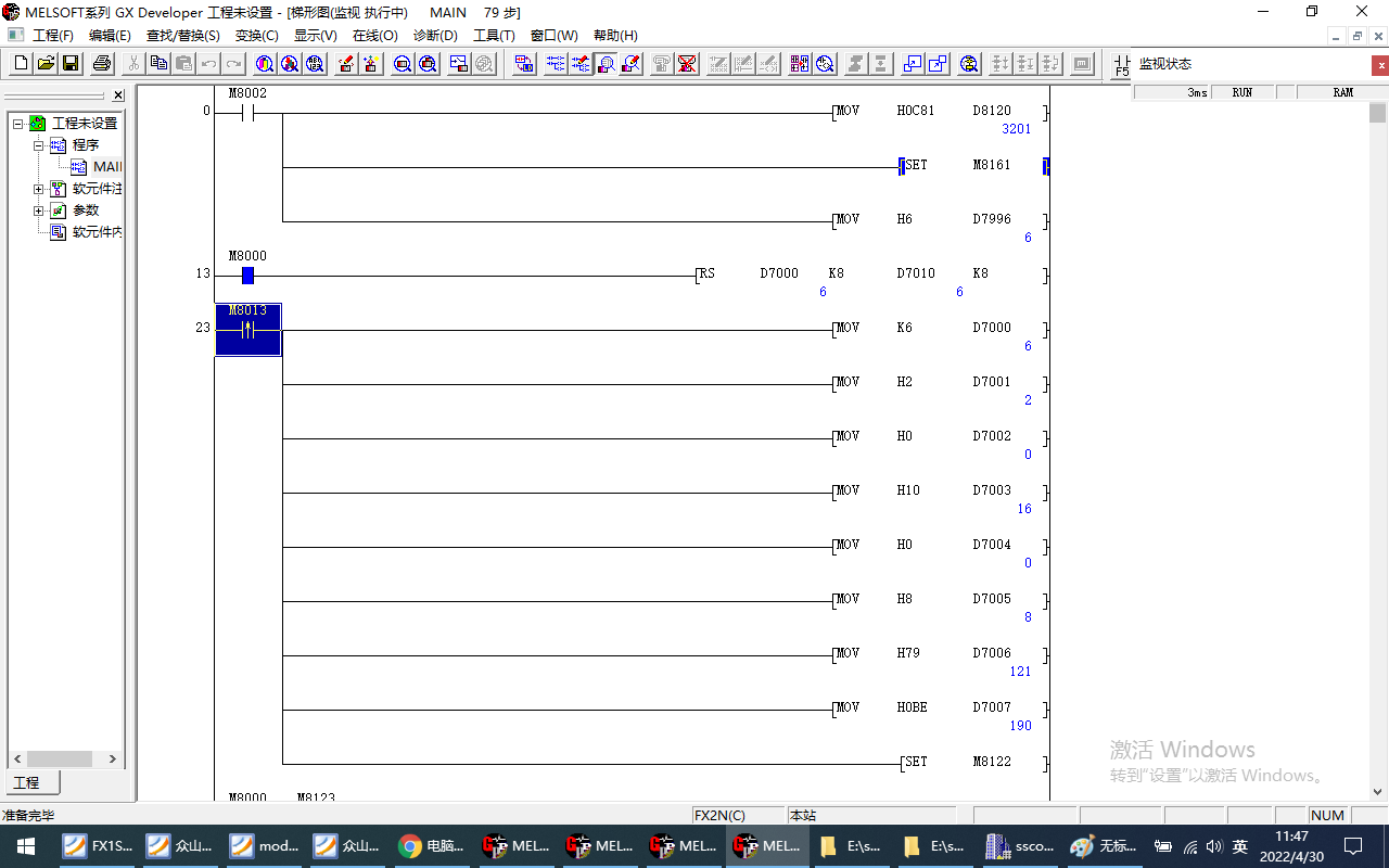 在程序的開頭,同時用M8002置位M8161,只處理存儲器的低8位即可。