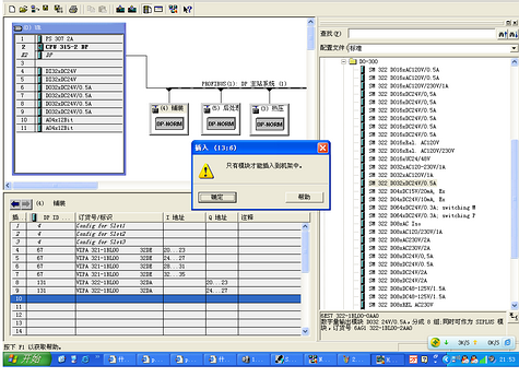 這是一條正在生產(chǎn)的流水線,PLC是西門子的S7-300 CPU 315-2DP,由于輸出點(diǎn)不夠,現(xiàn)需加裝一塊6ES7 322-1BL00-0AA0 SM 322 DO32xDC24V\0.5A 的輸出模塊。但在組態(tài)網(wǎng)絡(luò)時出錯,出錯信息:插入(13.6) 只有模塊才能插入到機(jī)架中。