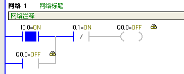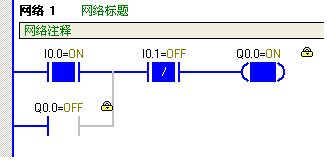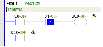 2. 比較常開的I0.0和常閉的I0.1,可以看到當I0.0的按鈕被按下后,監控時有能流流過。而I0.1的按鈕被按下后,監控時能流不能通過。這沒有什么好奇怪的,因為對于常閉觸點,該點ON的結果就是狀態的OFF,與常開觸點恰恰相反;