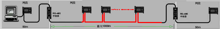 中繼器之間掛接控制器,那么相當于延伸50M,所以如果你如此使用,你是達不到1000米。