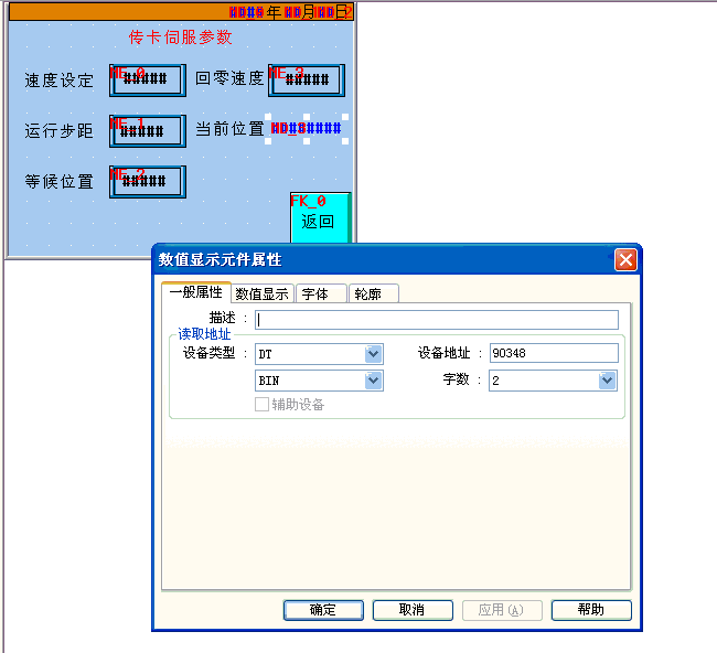 做個“數值顯示”的控件   來顯示伺服當前脈沖的值 。