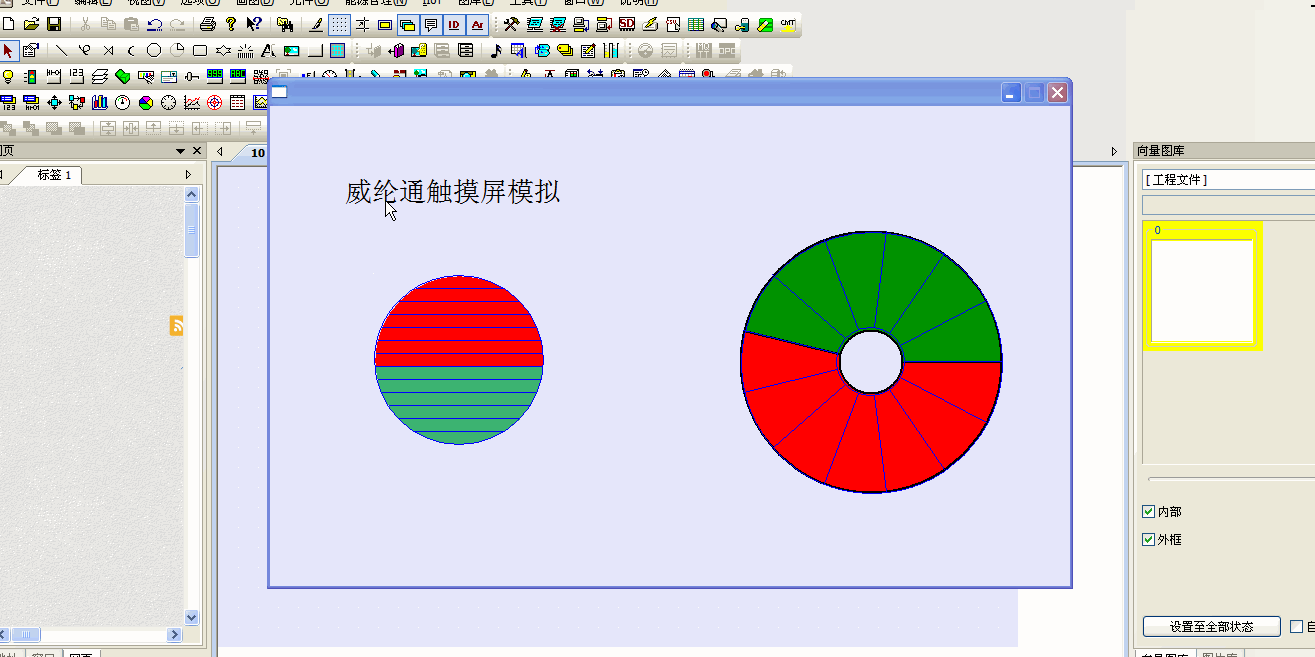 目前有個項目,加工產品是一個圓,這個圓被分成13份加工區域,想通過觸摸屏來顯示在加工過程中,(正在加工和加工過的區域)顯示紅色,未加工的區域顯示綠色,這樣用顏色區分開!