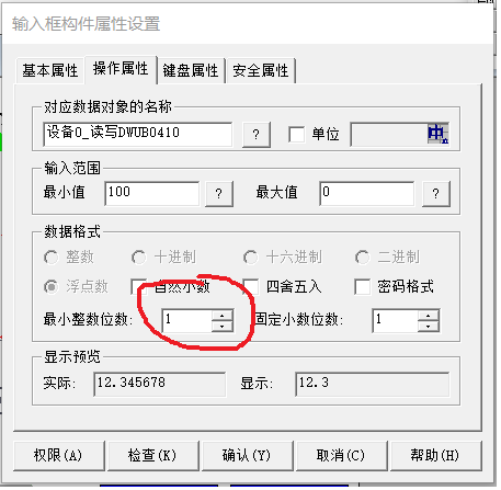 使用昆侖屏時,有時有些客戶要求數值顯示時,前位不足部分要補0顯示,例如數字1,客戶要求顯示3位數顯示成001,此時我們在此構件屬性窗口“最小整數 位”設定成3,則此數字框顯示數字時會始終顯示3位數,不足3位時會在前位補0。