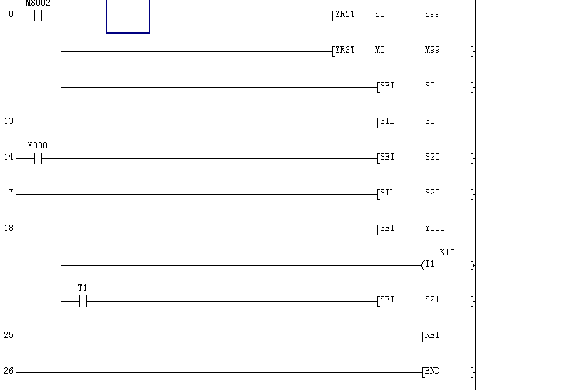 老師們好,我用的是GX-Dev8.86軟件,第14步,第19步的觸點S0,S20去掉后,轉(zhuǎn)換時還顯示錯誤,線圈不能直接接到左母線上。