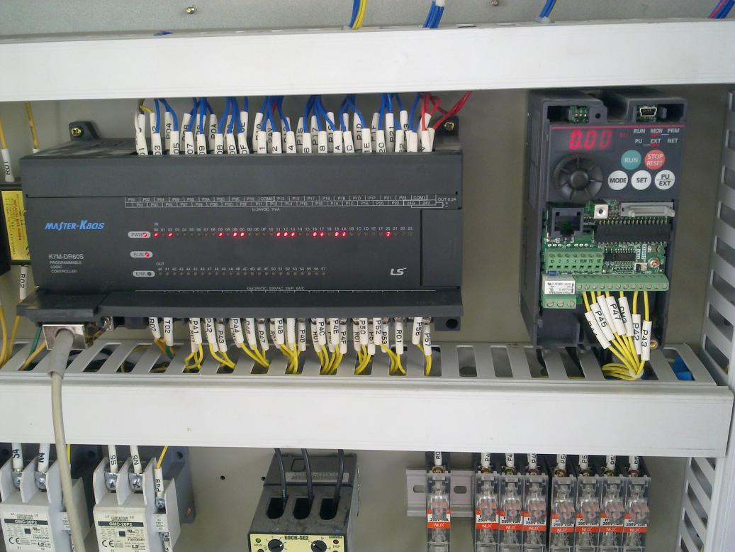 原裝機器從韓國進口,使用LG-K80S PLC,這次機械廠仿制了一些機器,PLC采用山寨版 Fx1N-60MR。