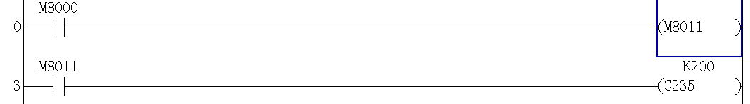 用8012好使,8011就不好使;我用的是c0;連上plc,沒寫入,監(jiān)視運行時,都不好使了;為什么啊?明天用c220試試,也不知道fx1n有沒有C220~c234;這幾個特殊在哪呢?是不是10ms的脈沖,不能用16位計數器接收?