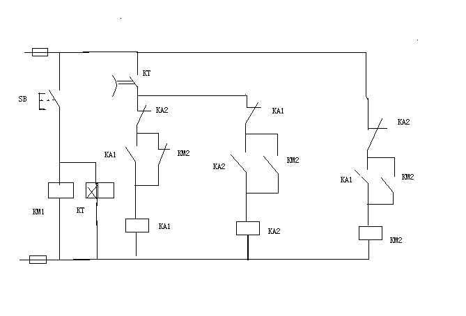 就是第一次接通開關,KM1得電,5秒后KM2得電,斷開開關,KM1失電,但KM2保持通電,再接通開關,KM1得電,5秒后KM2失電,如此循環。時間繼電器和開關只有一個,用傳統控制電路如何做?謝謝