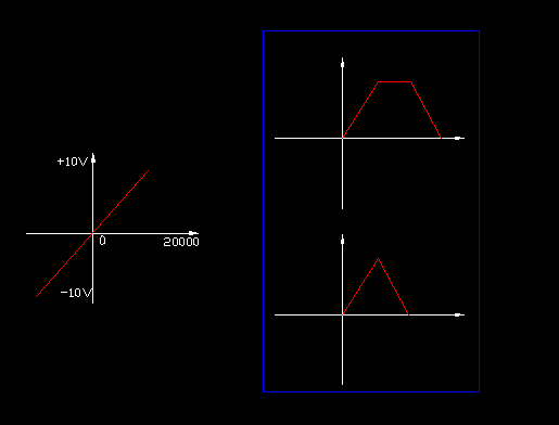FX2N-4DA 正負(fù)10V輸出,電壓輸出是左邊紅色直線,那伺服電機轉(zhuǎn)速也是這樣的,怎么樣讓電機轉(zhuǎn)動如右邊紅色曲線呢 |