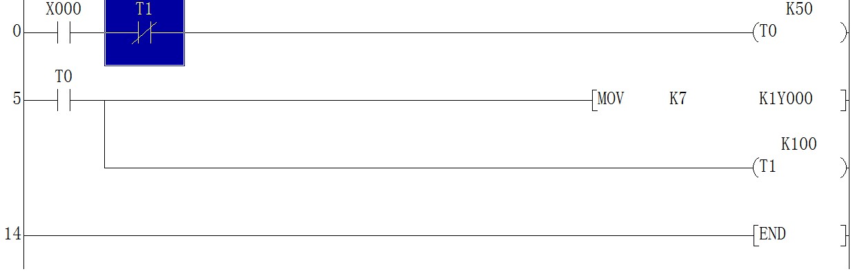 三電機相隔 5s 起動,各運行 10s 停止,循環往復.使用傳送比較指令完成控制要求