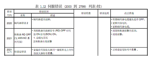 今天用了一個三菱的MR-J3的伺服,他會報 2021的錯誤代碼,在伺服放大器上顯示 21 。 我查了中英文的的手冊,都沒有找到這個代碼,這是什么情況?