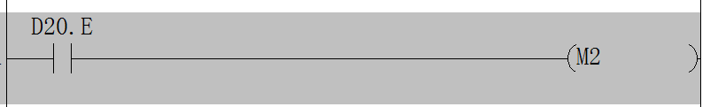 D20里面的數(shù)據(jù)是16位的,D20.E代表的是第15位,用字元件代替位原件來使用的。你看做一個是位元件功能的中間繼電器就行了。 |