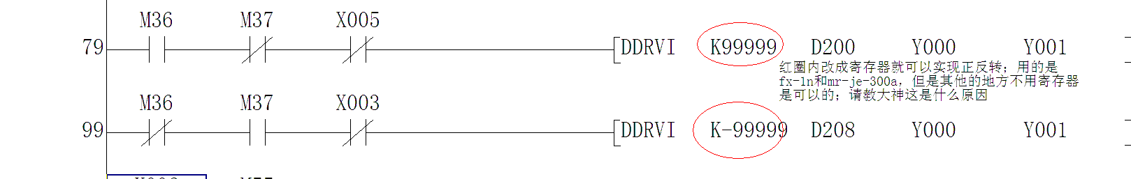 直接用k99999和k-99999不能實現正反轉,但是換成寄存就可以了,不知道是什么原因