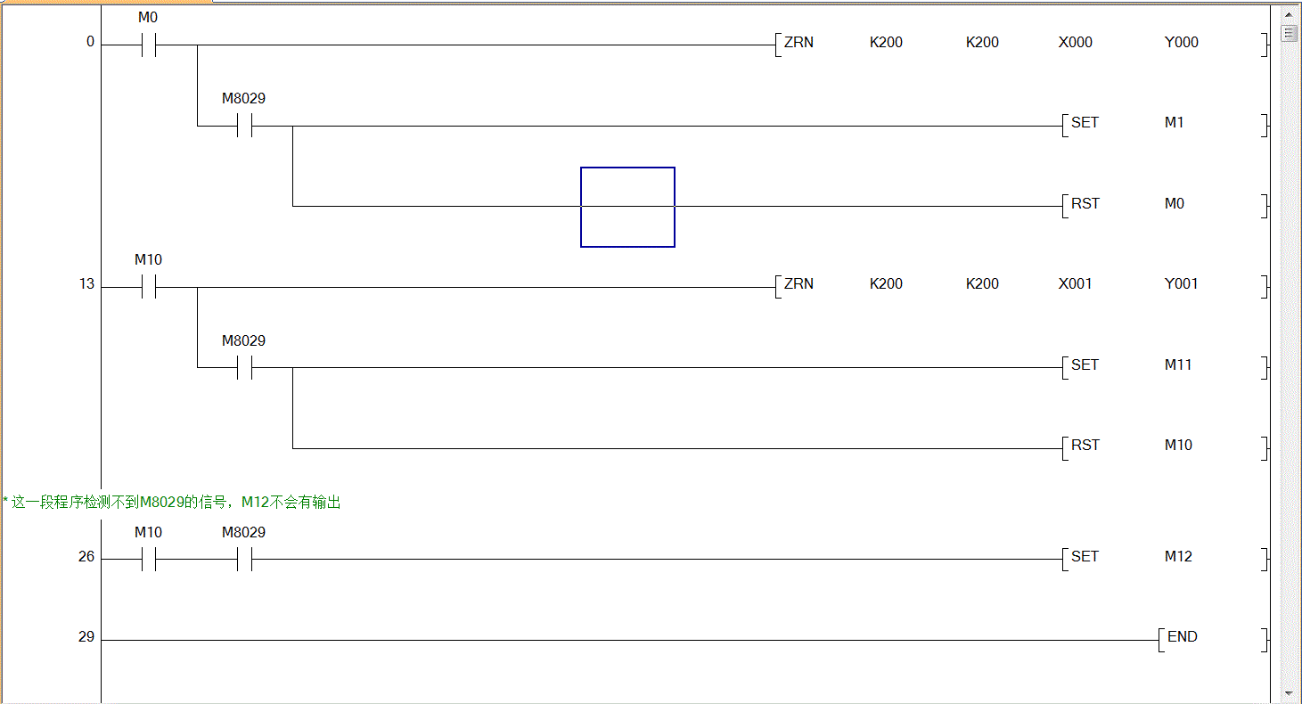 不會干擾,M8029緊跟著回原點指令,要回原地指令在一個程序段。