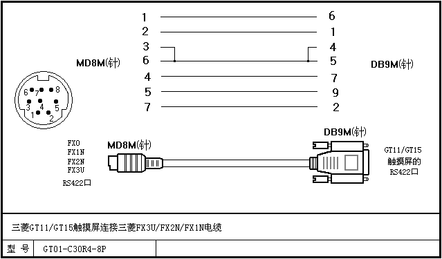 三菱GS21觸摸屏與FX3G-PLC通訊線焊接腳如何定義,如何做?有連接線圖嗎?