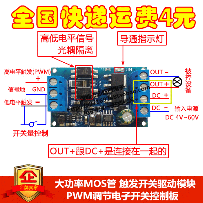在淘寶上買的一塊mos開關(guān)模塊,想用來通過pwm控制小馬達的速度,用三菱3u(漏型)該怎樣接線呢?這板子是不是要接源型輸出的,疑惑。