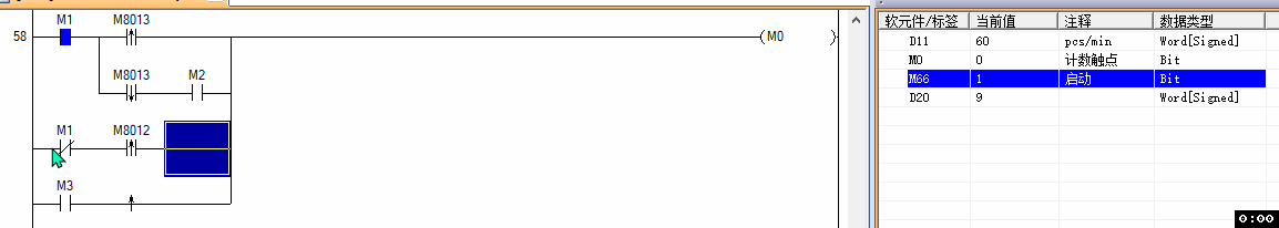 到下一個記數接近開關復位,同時把這一個產品的時間傳送到寄存器,就是一個產品的時間。