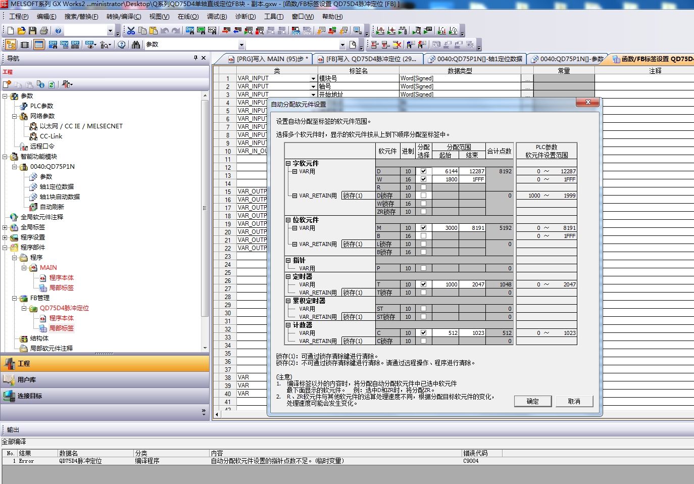 自動(dòng)分配軟元件設(shè)置的指針點(diǎn)數(shù)不足。(臨時(shí)變量)    C9004