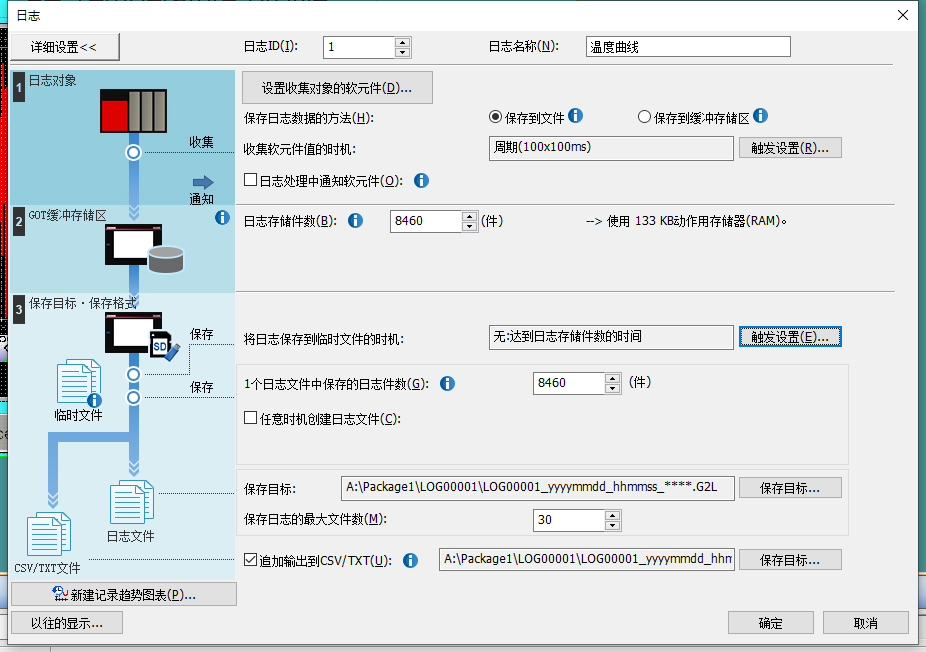 5.將日志保存到臨時文件的時機(jī):無,這個是開始設(shè)的無,如果我的屏不能斷電保持,這個“日志”是不是斷電就丟失,設(shè)置個周期保存能不能解決。前提是臨時文件的斷電保存的。