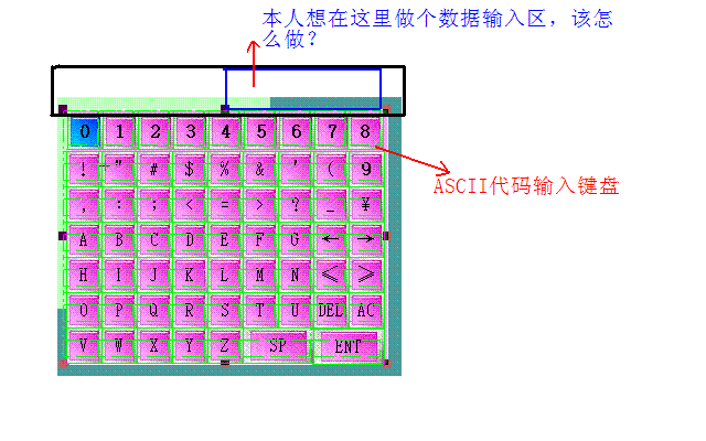 我制作好了一個ASCII代碼鍵盤,但是對于輸入顯示區(qū)該怎么做,我還不是很清楚。