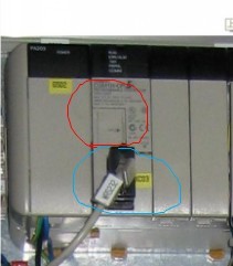 PLC上兩口: 一個小外設口(上紅)。一個9口(下藍)的。 (9口是干嘛用的?第一次用歐姆龍。) 見圖:  紅圈,藍圈。