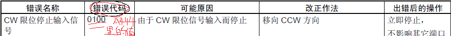 Sorry,我的表述有問題,舉個例子,電機的極限感應器壞了處于常on狀態,這時我進行找原點操作后PLC報警,如果是0脈沖輸出的話A444地址里有一個數字,我如何在不知道此感應器是壞的前提下查出所對應的PLC異常?CP1H op manual W450-CN5-02操作手冊里貌似查不到。