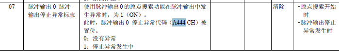 CP1H OMRON PLC編程時用A444代表脈沖輸出0發生異常,如果此時電機出現異常時A444出現了一個數字,此數字所對應的電機異常具體是什么大家知道嗎?手冊里貌似米有哇!