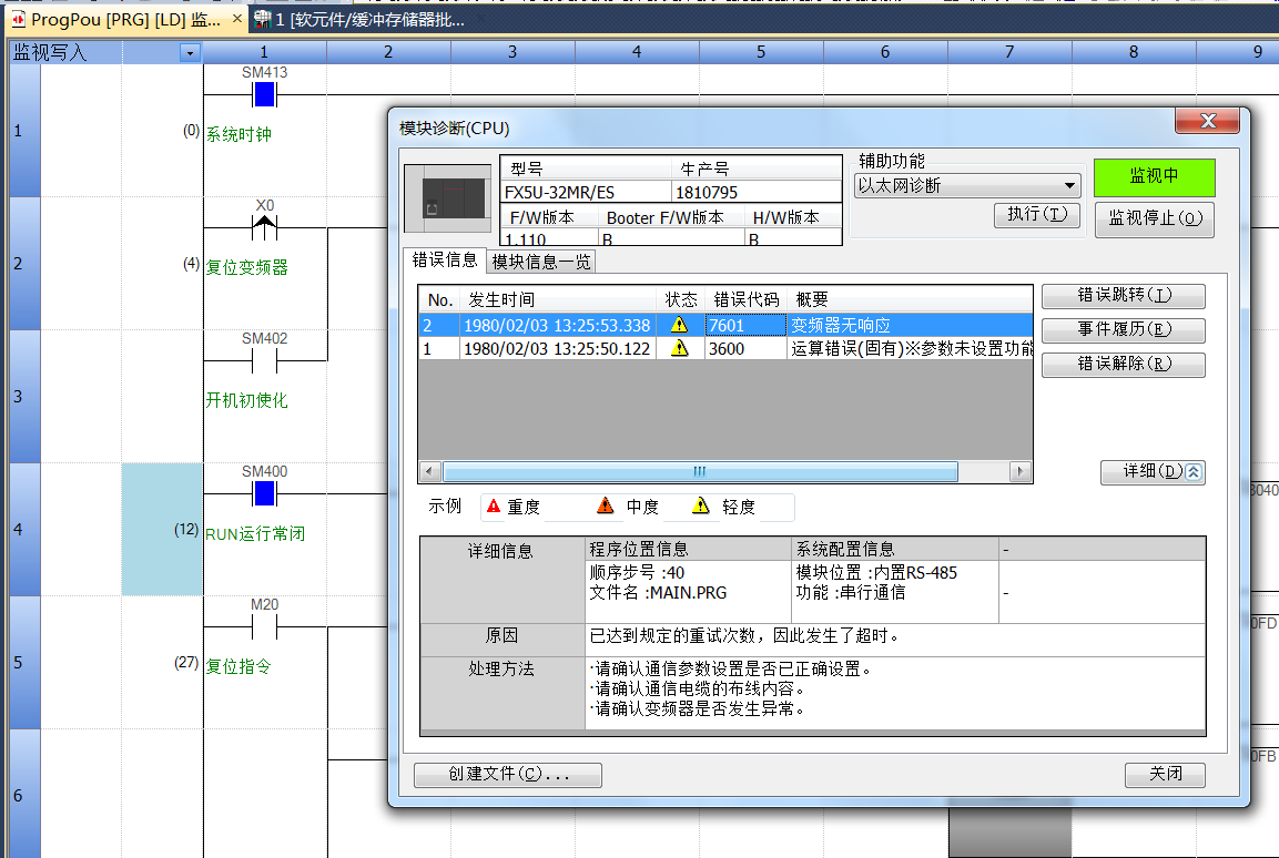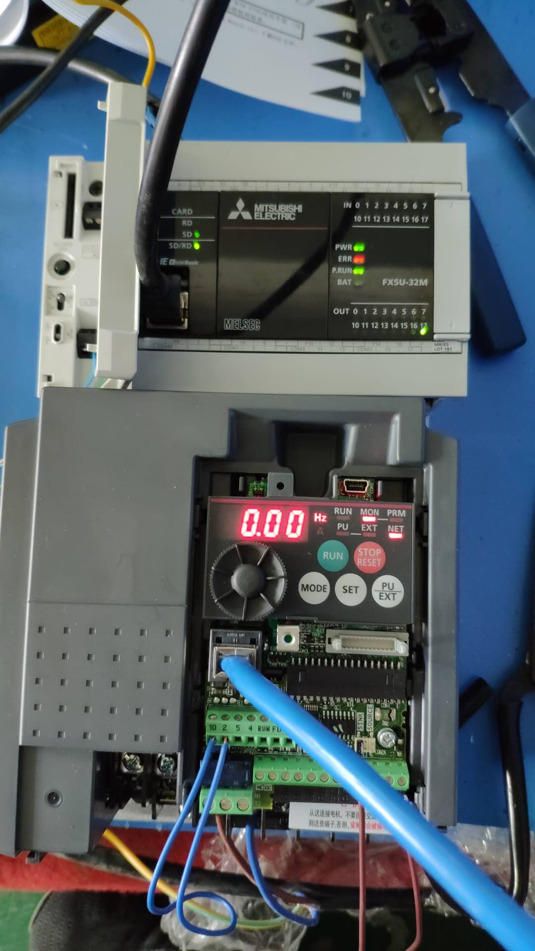 請問各位大師 ,我用FX5U的PLC和FR-E740變頻器485通訊,為什么設(shè)定參數(shù)之后始終通訊上不呢,PLC的SD燈為閃而RD燈沒有反應(yīng),PLC報通訊錯誤,麻煩各位大師出來給指導(dǎo)一下,在此謝過各位大師了! |