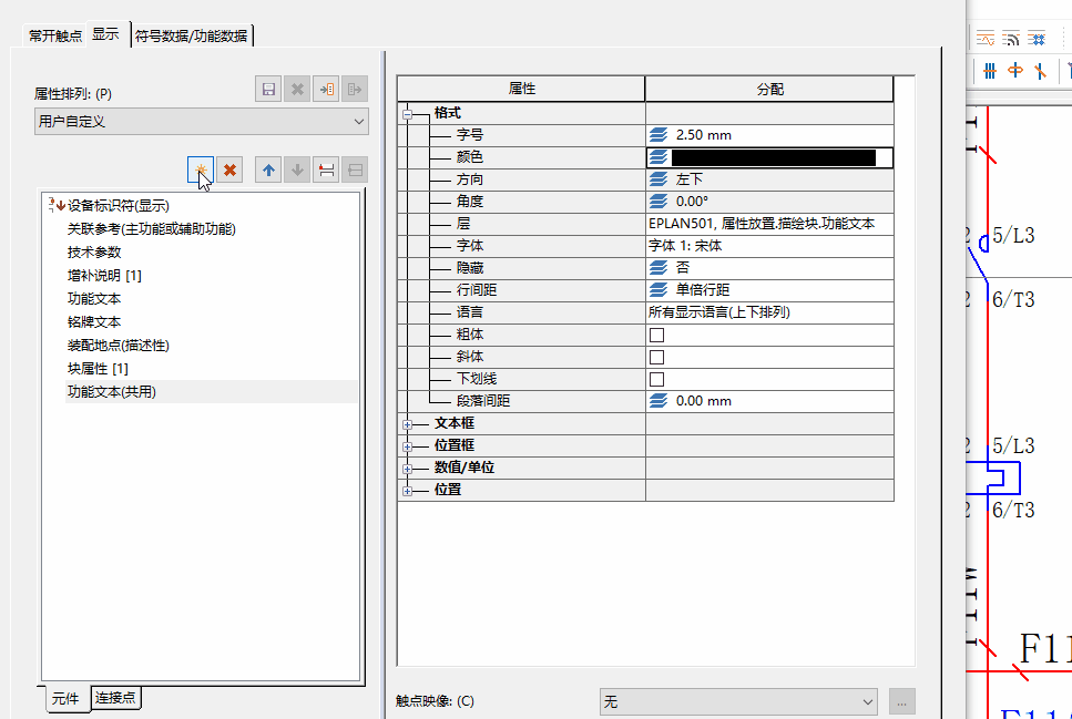 謝謝你的耐心解答,剛才試了試的確通過設置主觸電屬性顯示里的(功能文本共用)在主觸點上顯示了線圈的功能文本。我的意思是在插入主觸點前在導航器中就顯示主線圈是控制什么的(而不是所有線圈都顯示:{線圈,主回路分段}),這樣便于我在插入主觸電前快速選擇和線圈配套的主觸電,而不是在放置主觸點后在設置顯示,煩勞師傅給看看這個功能怎么實現(xiàn)呢