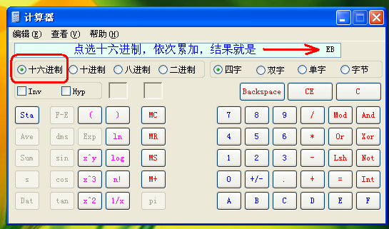 就是將01 06 20 01 0B B8進行累加就是EB啊!手工計算也行,用Windows自帶的計算器計算也行。注意是16進制啊!