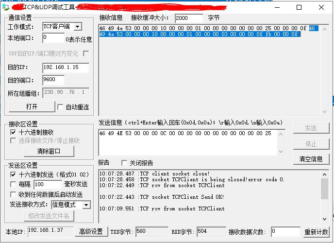 10:07:01.193 :TCP client connectting 192.168.1.15(192.168.1.15):9600...               //與192.168.1.15建立連接