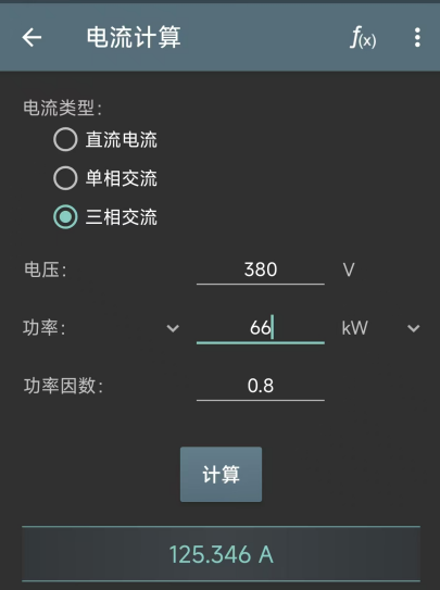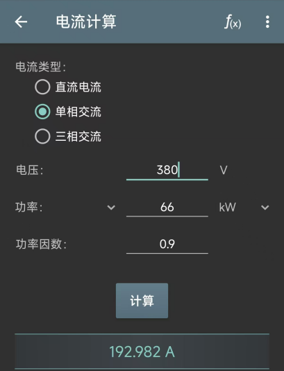 另一種計算方法就是單相66000W(66kW),每相的電流是大約193A(仍按上面功率因數為0.9計算)。