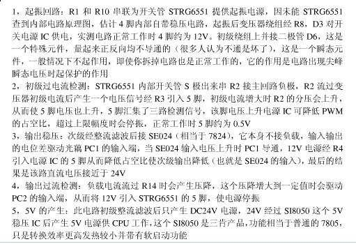 你檢查STRG6651的1 4腳,看有沒有300v 和0.5-1伏的啟動(dòng)電壓,檢查輸出有無短路,如沒有, 檢查R1 R10 C8,或直接更換掉,一般問題就能解決 |