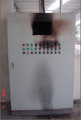 2) 給客戶提供技術資料不全或在安裝調試階段對客戶的技術指導不全。從機柜的外表面來看,機柜的出線槽也有燒毀現象,并不是煙霧,另從機柜上的電弧痕跡來看,在機柜內部發生嚴重短路時外部供電并沒有及時起到保護。因為短時間的短路不會引起第一圖機柜的大面積油漆燒焦。