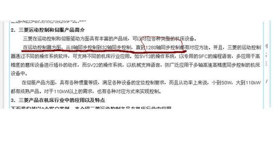 這是我在《中國工控網》看到的一篇文章,它說三菱運動控制器可以控制1280個軸。有圖為證 |