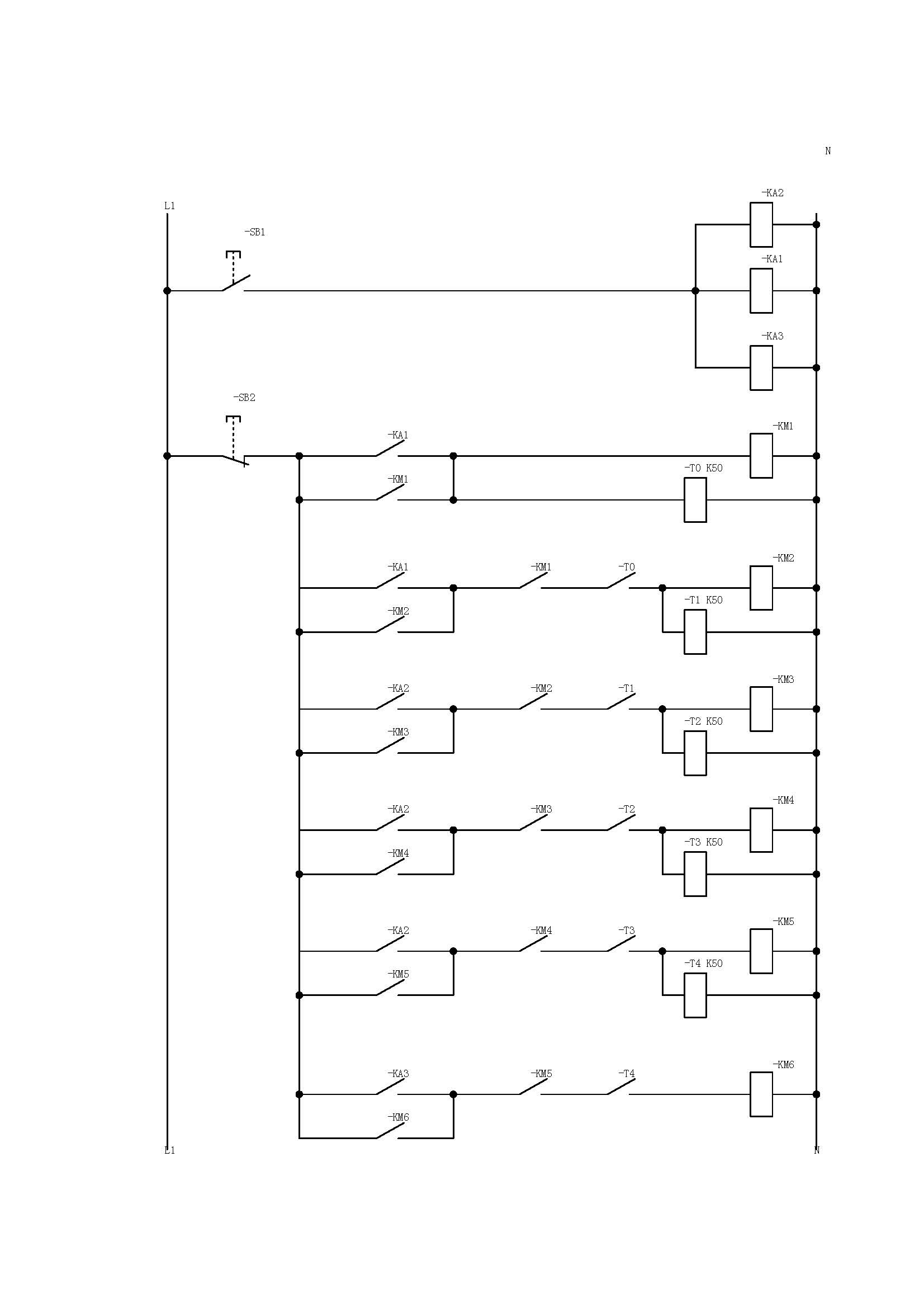用第一中間繼電器的常開(kāi)點(diǎn)串在第二電機(jī)的控制線路上,控制第二個(gè)電機(jī)啟動(dòng),第三個(gè)用第二個(gè)依次類推. |
