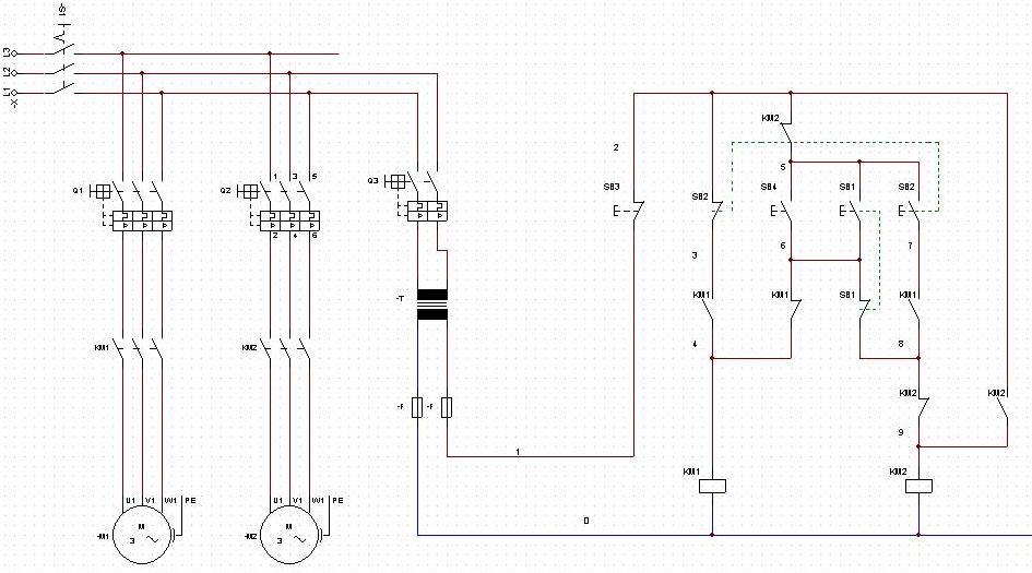 3.    以上先后次序不能亂,即SB1-(電機M1先啟動)-SB4-(電機M2啟動)-SB2-(電機M1停止)-SB3(電機M2停止)。