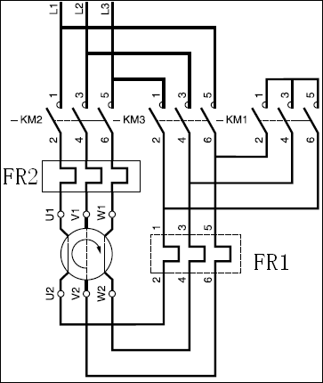 星三角啟動電機的熱繼電器FR1和FR2在圖中2個位置,其保護整定值應該設多少?