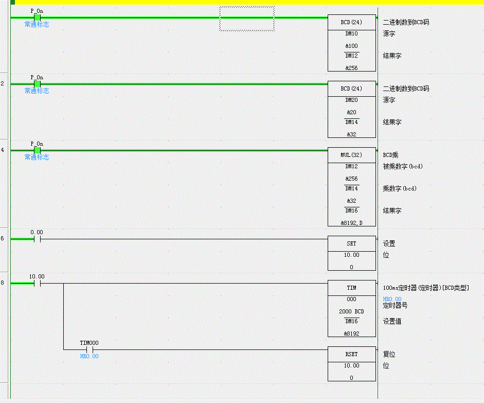 第1個問題,MULL DM40 DM42 DM44,內容是&12X&10=&564,我不知道這個結果是怎么算的。我錄入值12,它就變成十進制&12了;加#的話它就變成16進制數了。據悉,BCD碼錄入值小于等于9999就行了,不知道對不對。如果不對,那我不知道怎么樣才能錄入一個BCD碼數據了。