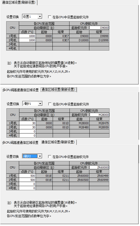 請問多CPU直接的自動刷新設置各個cpu的軟元件的對應關系不懂麻煩大神們指點下