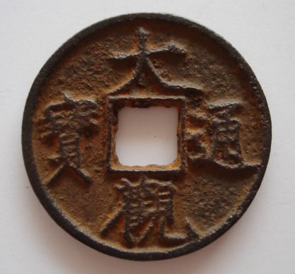 上圖是宋朝的大觀通寶鐵錢,至今也有近千年,鐵質(zhì)的容易生銹,一般看到這樣的也算是好品相的了。